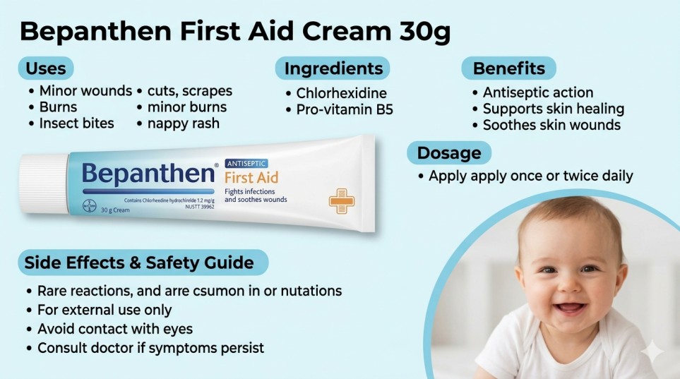 That’s where Bepanthen First Aid Cream 30g comes in. This cream is designed to protect damaged skin while helping it heal faster. Instead of just sitting on top of the skin, it actually works to restore moisture and support skin regeneration.